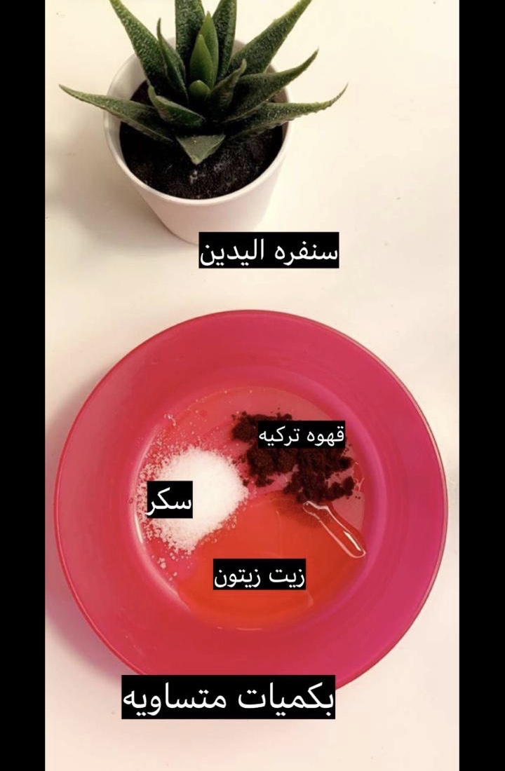 سنفره لليدين : قهوه تركيه ، سكر ، زبادي ( بكيمات متساويه )
